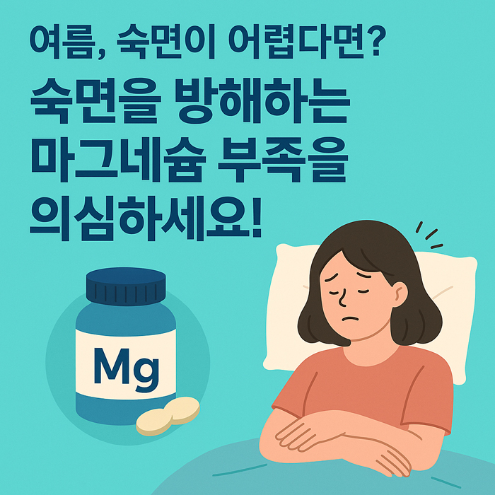 여름철 수면 부족은 단순히 더위 때문만이 아니라 마그네슘 결핍</strong이 원인일 수 있습니다. 음식, 영양제, 생활습관을 통해 숙면을 위한 환경을 조성해보세요. 깊은 잠은 건강한 하루의 출발입니다.