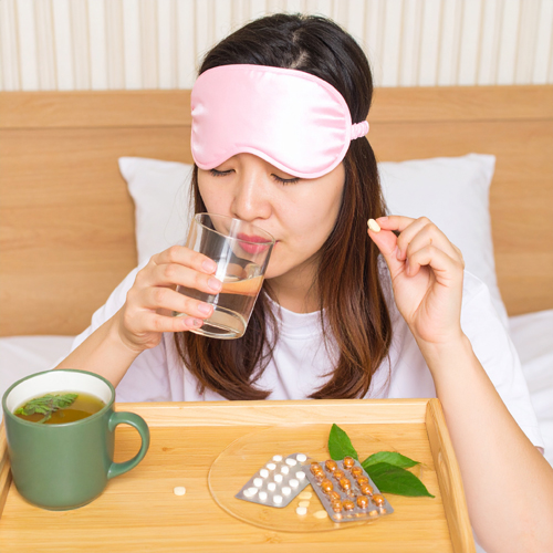 A. 가벼운 불면이라면 가능하나, 기존 수면제를 복용 중이라면 전문의 상담이 필요합니다.