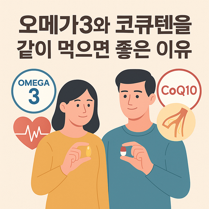 오메가3와 코큐텐(CoQ10)은 각각 혈관 건강과 에너지 대사·항산화에 핵심적인 보충제입니다. 최근에는 두 성분을 함께 복용했을 때 심혈관 보호, 항산화 안정성, 피로 회복 등에서 상승 효과가 크다는 점이 주목받고 있습니다.