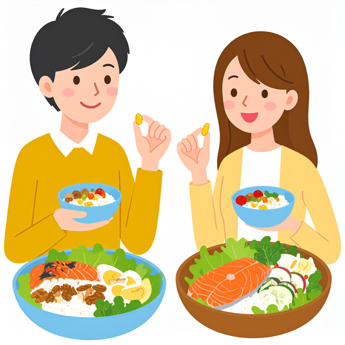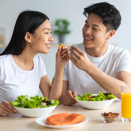 비타민 D·비타민 E 등 지용성 영양소와 식이 지방이 포함된 식사와 함께 섭취하면 흡수와 산화 안정성 측면에서 시너지가 납니다.
