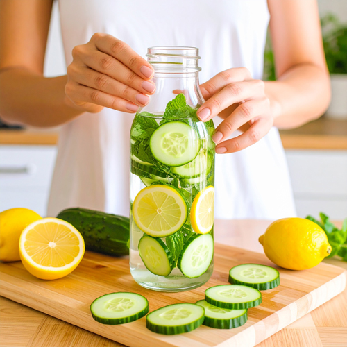 오이 디톡스워터는 오이를 얇게 썰어 물에 우려 마시는 건강 음료입니다. 오이의 수분과 미네랄이 물에 녹아들며, 여름철 수분 보충과 붓기 제거, 피부 개선, 피로 해소에 도움이 됩니다. 레몬, 생강, 민트 등을 추가해 맛과 효능을 더할 수 있습니다.