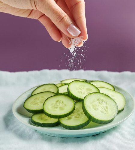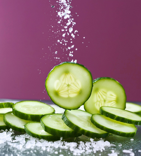 오이의 쓴맛을 제거하는 또 다른 방법은 소금을 사용하는 것입니다. 오이의 끝부분을 잘라낸 후, 잘린 면에 소금을 뿌리고 문질러 줍니다. 소금은 오이 표면의 쿠쿠르비타신을 녹여내는 역할을 합니다. 소금으로 문지른 후 오이를 깨끗이 씻어내면 쓴맛이 줄어들게 됩니다. 이는 소금이 쓴맛 성분을 화학적으로 분해시키는 작용을 하기 때문입니다. 소금은 또한 오이의 수분을 적절히 조절하여 아삭한 식감을 유지하는 데도 도움을 줍니다.