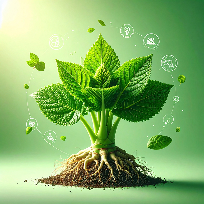 A. 용도가 다릅니다. 뿌리는 항균·풍미, 잎 추출물은 항산화·면역·해독 측면에서 강점이 큽니다. 목적에 맞게 병행하면 좋습니다.