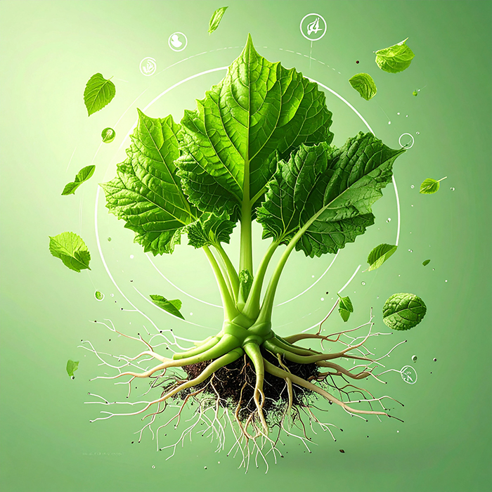 A. 용도가 다릅니다. 뿌리는 항균·풍미, 잎 추출물은 항산화·면역·해독 측면에서 강점이 큽니다. 목적에 맞게 병행하면 좋습니다.