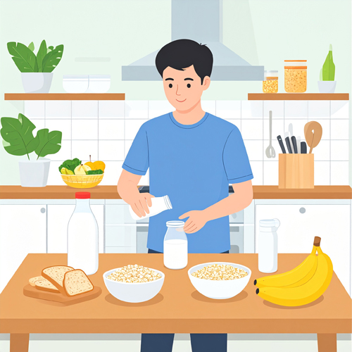 가능합니다. 우유에 타서 마시면 단백질과 칼슘을 동시에 섭취할 수 있어 운동 후 회복에 좋습니다.