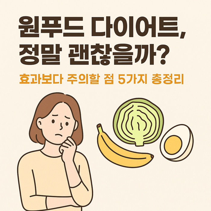 원푸드 다이어트는 일시적인 체중 감량에 효과적일 수 있지만, 장기적으로는 영양 결핍, 요요, 근육 손실 등 심각한 부작용이 따릅니다. 다이어트의 진짜 목적은 단순한 숫자 줄이기가 아닌, 건강한 몸과 생활을 만드는 것입니다. 꾸준히 실천할 수 있는 방법을 선택하는 것이 가장 현명한 다이어트 전략입니다.