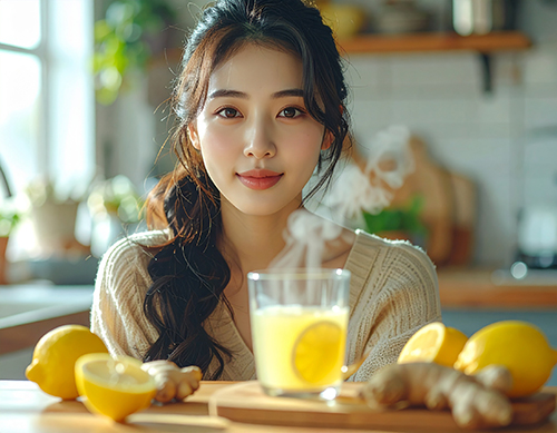 특히 따뜻한 물에 레몬생강즙을 타서 마시면 목과 기관지 점막을 보호하는 데 더 큰 도움이 됩니다.