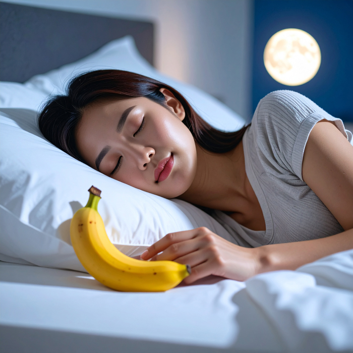 - 바나나 1개는 트립토판·마그네슘·칼륨·B6의 콤보로 수면 개시·유지에 긍정적입니다.