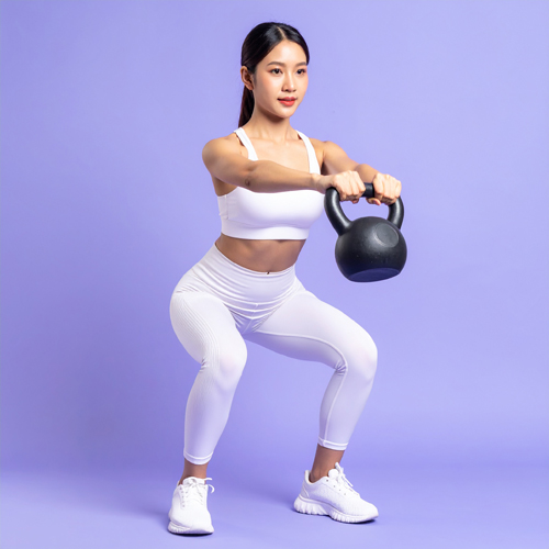 운동 팁 : 스윙 15회 → 고블릿 스쿼트 10회 → 역런지 10회(좌우) → 60초 휴식, 4~5라운드. 초보자는 6~8kg, 숙련자는 12~16kg 권장.