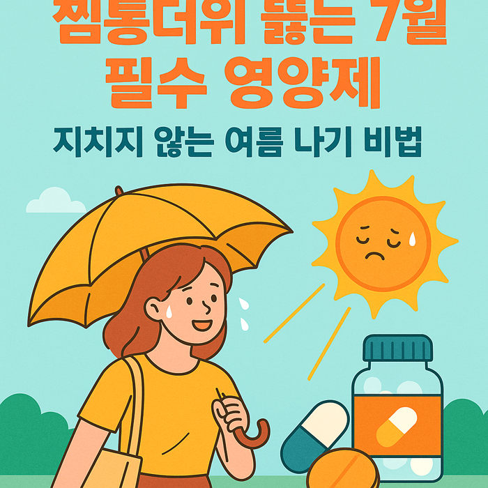 찜통더위 속 건강을 지키는 가장 똑똑한 방법은 **내 몸에 맞는 영양제를 전략적으로 섭취하는 것**입니다. 피로 회복, 면역력 강화, 피부 보호까지 영양제로 준비하면 무더운 7월도 가뿐하게 이겨낼 수 있습니다.
