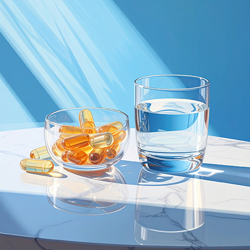 체내에서 원료가 잘 녹아 혈액과 조직으로 이동하려면 수분이 필수입니다. 일반적으로 체중(kg) × 30ml 정도의 수분 섭취가 권장되며, 영양제를 먹을 때도 한 번에 물을 충분히 마셔주는 것이 좋습니다.