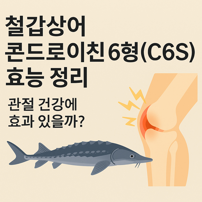 철갑상어 콘드로이친 6형(C6S)은 연골 보호, 염증 완화, 윤활 강화 등 다방면으로 관절 건강을 지원하는 강력한 성분입니다. 중장년층, 활동량 많은 직장인, 관절염 초기 증상이 있는 분들께 특히 유익합니다.