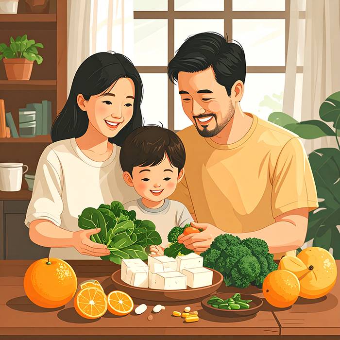 A. 성장기 아동은 요구량이 높습니다. 먼저 음식으로 보충하되, 보충제는 소아청소년과 상담 후 결정하세요.