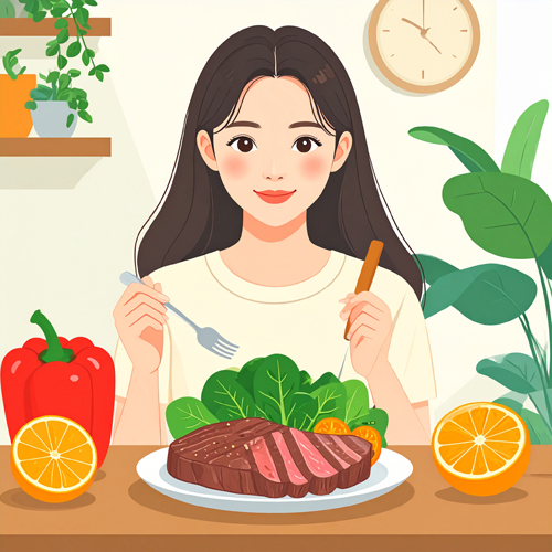 아침을 거르면 위산 분비 저하로 비헴철 흡수가 더 떨어질 수 있습니다. 세 끼 규칙 식사와 신선한 샐러드(비타민 C)를 곁들이세요.