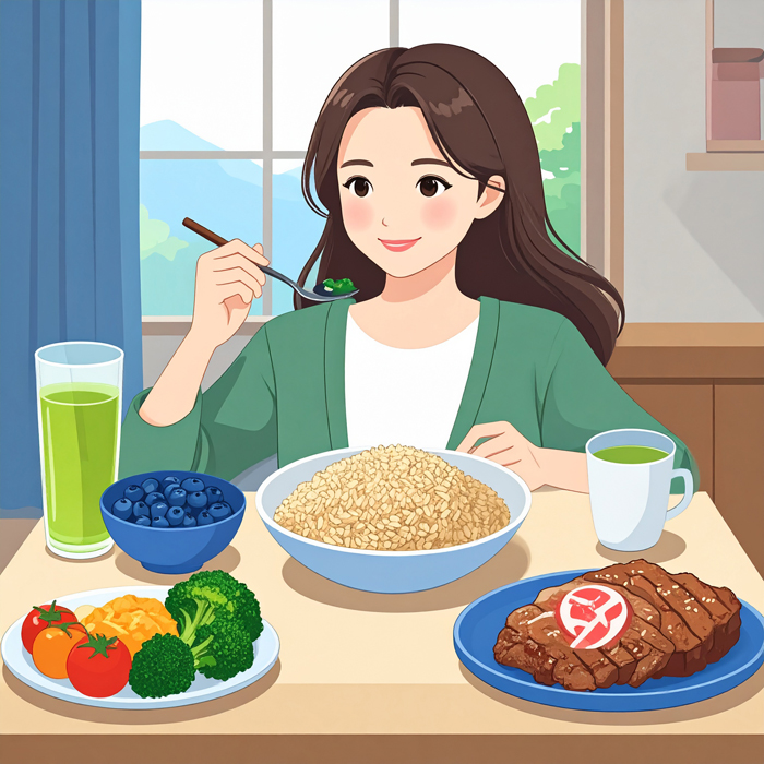 - 저GI 중심: 현미, 귀리, 통밀, 콩류, 잎채소 등으로 혈당 급등을 억제합니다.
