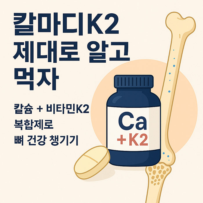 단순한 칼슘 보충만으로는 부족합니다. 비타민D3와 비타민K2를 더해 흡수→이동→정착을 완성하는 것이 관건입니다. 칼마디K2처럼 균형 잡힌 복합제를 꾸준히 섭취하고, 식단·운동·햇빛 노출을 병행해 골밀도 유지와 혈관 건강까지 함께 챙기세요.