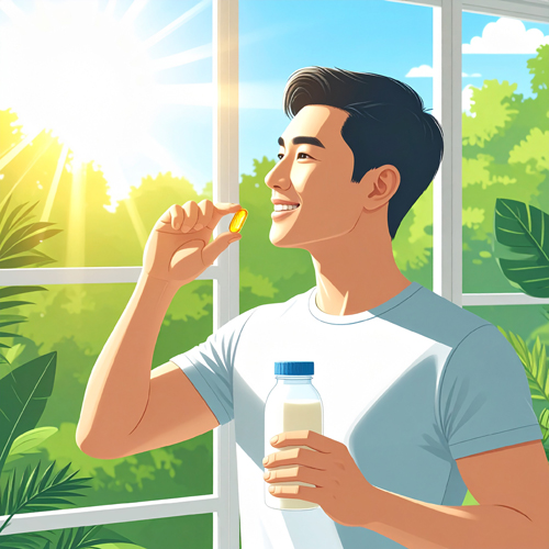 실내 생활이 많은 현대인은 합성이 부족하므로 보충제 섭취가 권장됩니다.