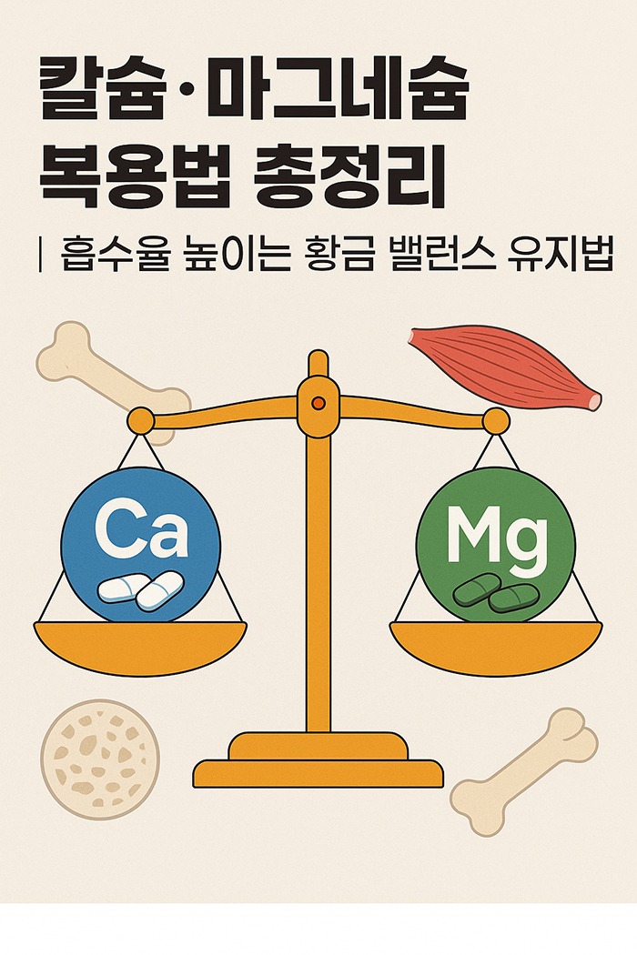 칼슘과 마그네슘은 단순 미네랄이 아니라 우리 몸의 밸런스를 유지하는 핵심 듀오입니다. 하나만 강조하면 불균형이 생기고, 두 미네랄이 조화롭게 작용할 때 건강한 뼈와 근육이 만들어집니다.