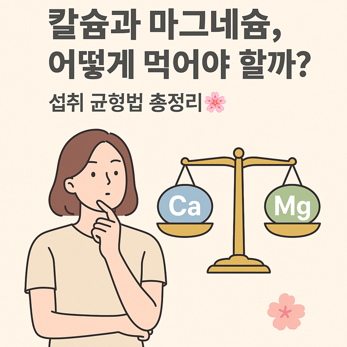 칼슘과 마그네슘의 균형은 뼈·치아 건강을 넘어 근육·신경·혈압·수면까지 전신에 영향을 줍니다. 기본은 Ca:Mg=2:1, 여기에 비타민 D·K2를 곁들이면 칼슘이 뼈로 잘 가도록 돕습니다. 오늘 식단부터 “칼슘만”이 아닌 “칼마 밸런스”를 실천해 보세요.
