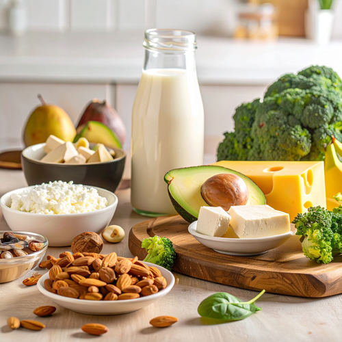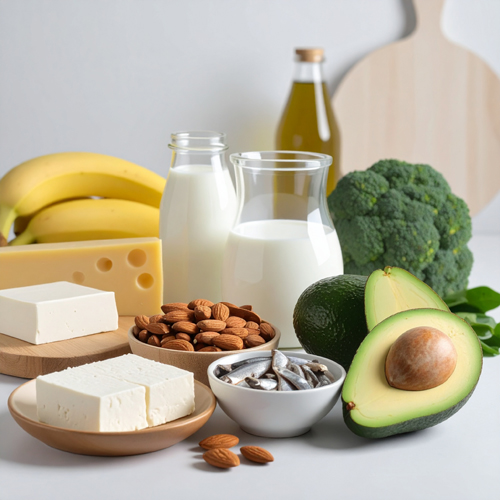 칼슘 강화 식물성 우유, 두부·콩류, 잔멸치·뼈째 먹는 통조림 생선, 케일·브로콜리 등을 조합하고, 필요 시 복합제를 활용하세요.
