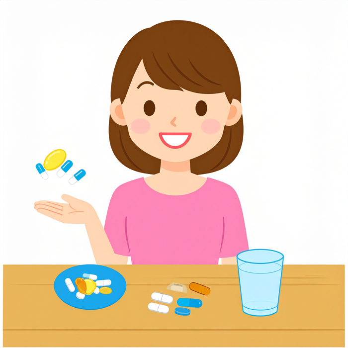 - 저녁: 칼슘 보충제 + 비타민 D 복합제