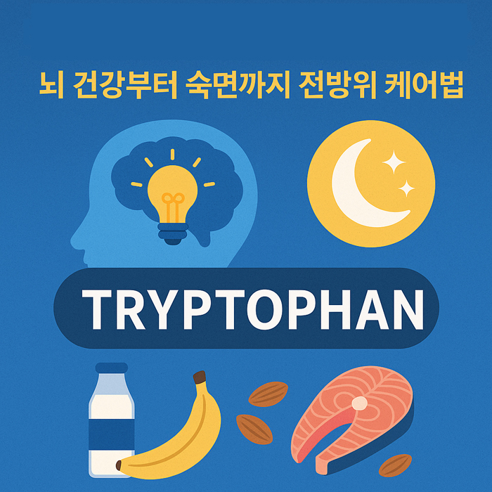 트립토판은 뇌 건강·숙면·정서 안정·면역 균형까지 전방위로 관여하는 핵심 영양소입니다. 현대인의 불규칙한 생활·스트레스 환경에서는 부족해지기 쉬우므로, 식단과 생활 루틴으로 꾸준히 보완하세요.
