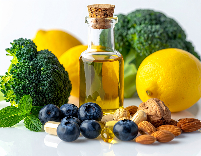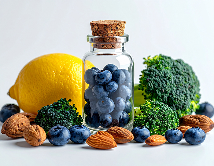 블루베리, 토마토, 브로콜리, 시금치, 당근, 녹차, 견과류처럼 항산화 성분이 풍부한 식품을 식단에 꾸준히 넣는 것이 좋습니다. 영양제는 보조 역할이고, 기본은 식사입니다.