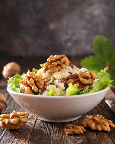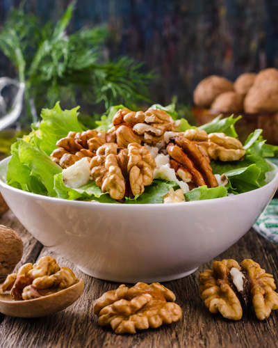 6. 샐러드: 호두를 샐러드에 넣으면 고소하고 영양가 있는 샐러드를 만들 수 있습니다. 호두와 함께 과일, 채소, 치즈 등을 넣어 샐러드를 만들어 보세요.