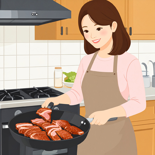 - 기름이 많이 나오면 키친타월로 닦아 담백하게 즐기세요.