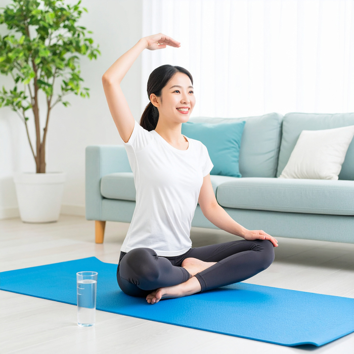 아침 — 기상 후 10~20분 햇빛(창가도 OK) → 물 300ml → 가벼운 스트레칭 5분