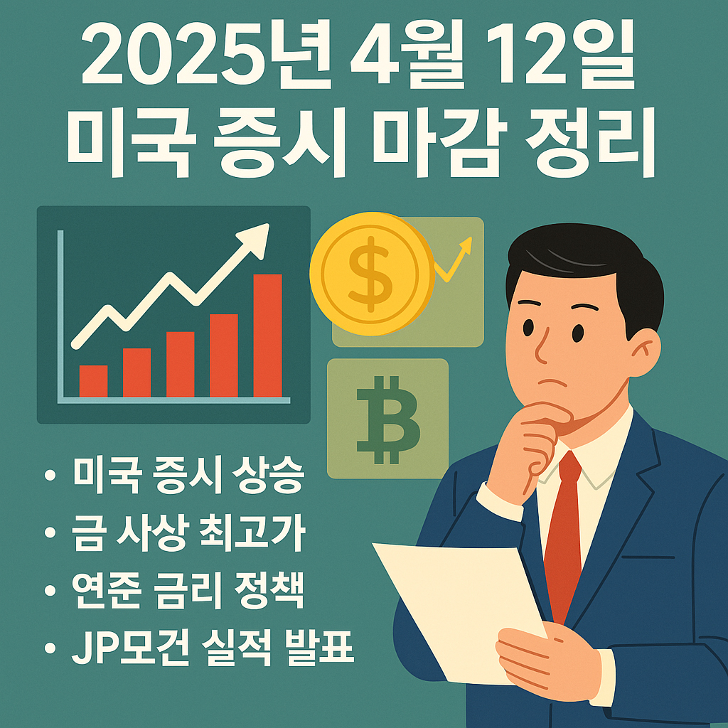 4월 12일(현지 시각) 미국 증시는 장중 변동성을 극복하고 극적인 반등에 성공했습니다. 금 가격이 사상 최고치를 기록하며 안전자산 수요가 커지는 가운데, JP모건의 깜짝 실적 발표가 투자심리를 다소 안정시켰습니다. 반면, 연준 위원들의 발언과 관세 갈등은 여전히 시장의 경계감을 높이고 있는데요. 아래에서 오늘 시장을 흔든 핵심 이슈들을 깊이 있게 살펴보겠습니다.