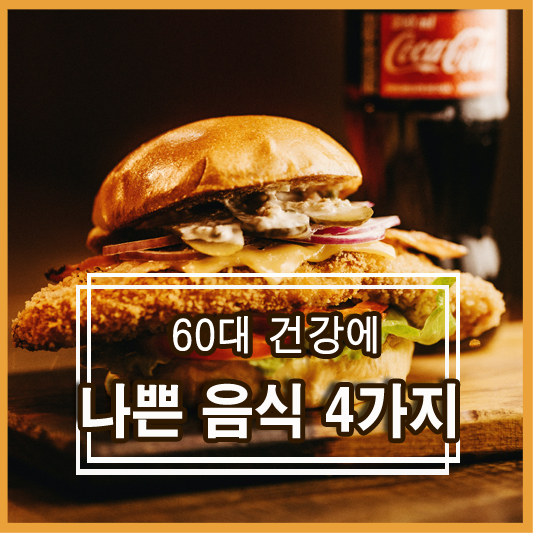 60대는 노화가 가속화되는 시기로, 심혈관 질환, 고혈압, 당뇨병 등의 만성질환에 걸릴 위험도 높아집니다. 그러므로 식이요법에 더욱 신경을 써야 하며, 특히 건강에 나쁜 음식은 피하는 것이 좋습니다. 건강에 나쁜 음식이란, 과도한 열량과 포화지방, 소금, 설탕 등을 함유하고 있거나, 인공첨가물이 많이 들어간 음식을 말합니다. 이러한 음식들은 혈관을 막거나 염증을 유발하며, 신체의 항상성을 깨트리고 면역력을 약화시킵니다.