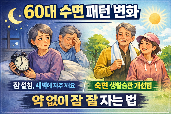 60대 이후 많은 분들이 “잠이 예전 같지 않다”, “새벽에 꼭 한두 번 깬다”, “자는 시간은 긴데 개운하지 않다”고 느낍니다. 이 변화는 단순한 불면이 아니라 노화에 따른 수면 구조와 생체리듬 변화에서 시작됩니다. 중요한 점은 질병이 아니라 조절 가능한 상태라는 사실입니다. 아래에서 원인을 정확히 짚고, 약에 의존하지 않고도 생활습관으로 개선하는 방법을 정리해 드립니다.