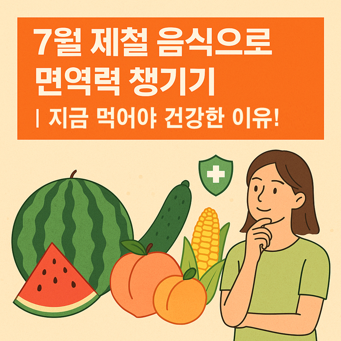 이번 글에서는 7월에 꼭 먹어야 할 제철 음식과 그 이유, 그리고 면역력 강화에 도움이 되는 섭취 팁까지 상세히 알려드립니다.